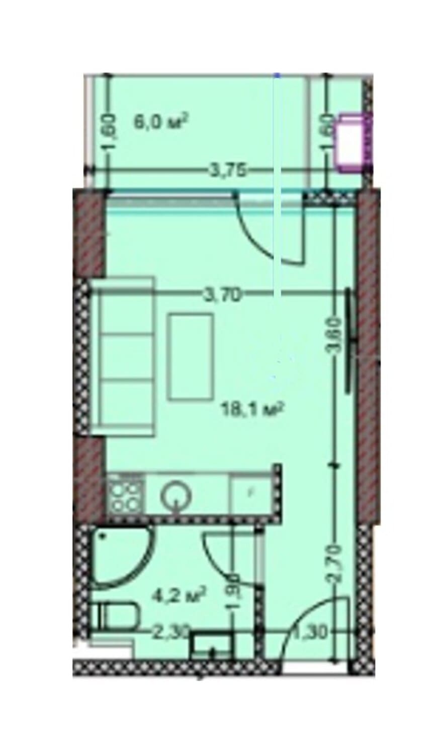 An apartment for sale on the 9th floor of building B. The total area is 35.6 square meters. The apartment is presented in the form of a white frame, which allows the new owner to realize their design preferences and create a cozy space to their liking. The building’s multiple floors provide pleasant views from the windows, as well as the added benefit of a quieter and more private environment.