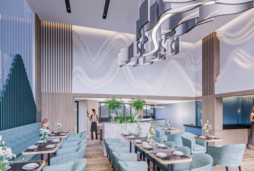 The arrangement of cafes and restaurants is spacious premises with high ceilings and panoramic windows. Maximum service without the need to leave the complex.