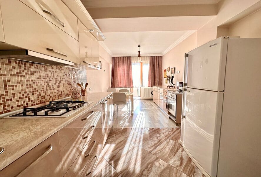 We offer for rent a spacious apartment with a total area of 130 square meters on 26 May Street. Located on the 5th floor of the building. The apartment has central heating and hot water is provided by gas, with a boiler installed on the balcony. The apartment is equipped with air conditioning for a comfortable stay during the hot season.