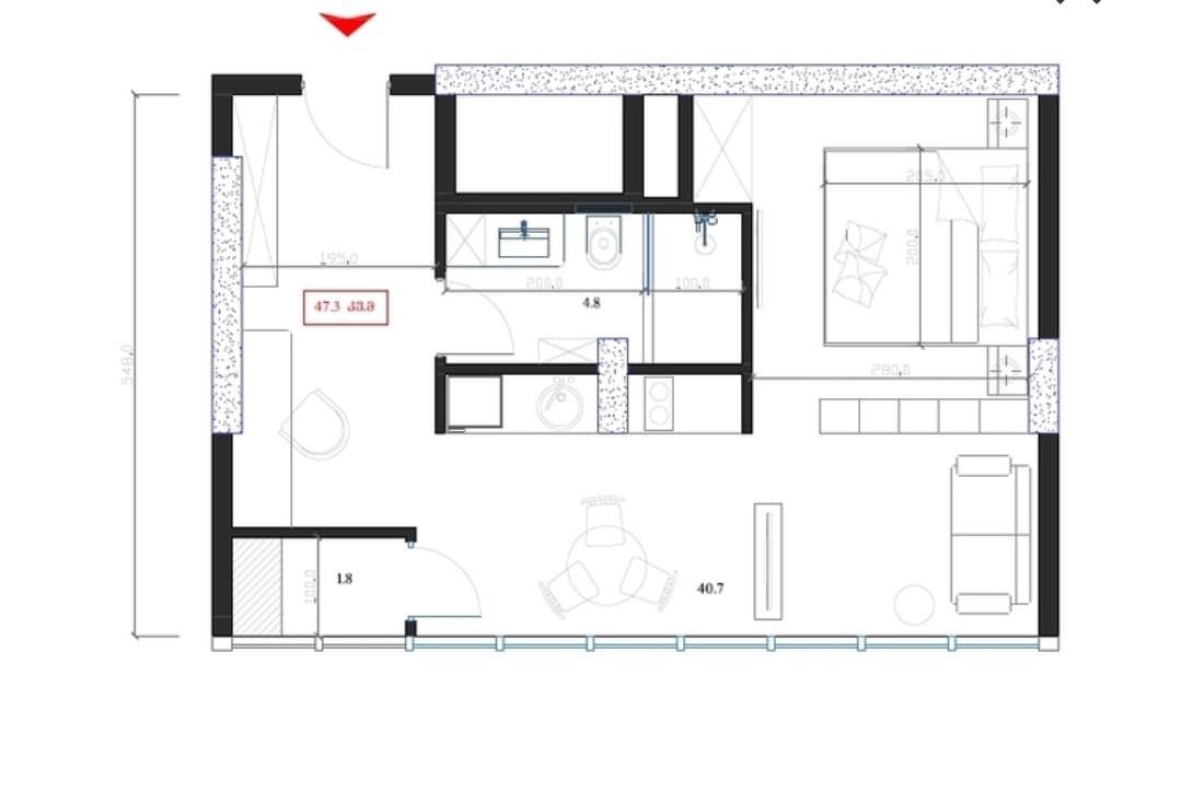 The room on the third floor provides excellent light transmission and views, making your home bright and cozy. The black frame provides the opportunity to independently determine the layout and style of the apartment, giving it a unique look.