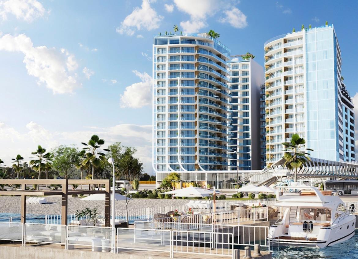 The apartment is located in the elite multifunctional investment complex Marina Club located on the first coastline. The premium complex consists of two, 16 and 18 storey blocks, which are connected by a common podium.