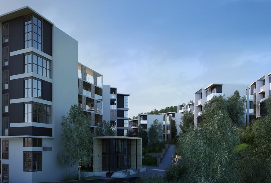 The condominiums are located on top of a high hill, overlooking the sea and mountains, and consist of 238 apartments with 1 and 2 bedrooms, ranging in size from 33 to 68 sqm. The apartments have common outdoor areas, including parking and two swimming pools, one of which is an infinity pool at the highest point.
