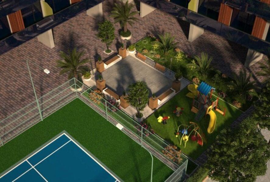 – A landscaped common-use veranda with an outdoor swimming pool, jacuzzi, summer cinema and a café-bar;