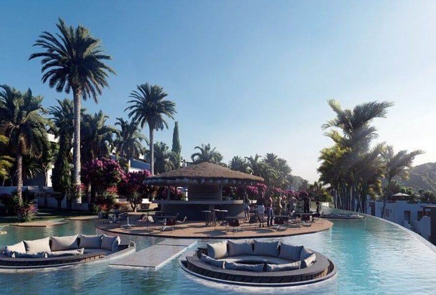 The first phase of the project consists of beachfront villas, beach villas with an artificial beach made of real sand, and apartments with their own pool and garden.