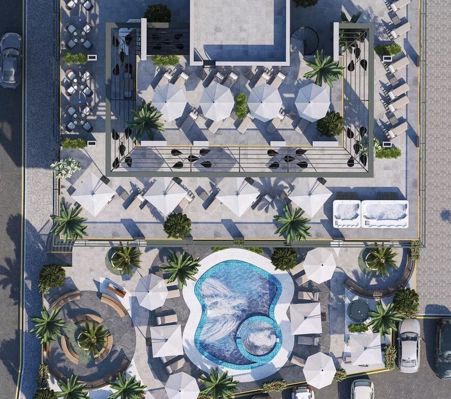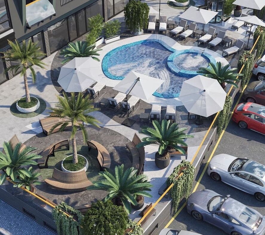 Modern infrastructure. The complex will have a gym, a restaurant and a bar, where you can have a good time with friends and family. An outdoor pool will allow you to enjoy summer days surrounded by greenery and magnificent views.
