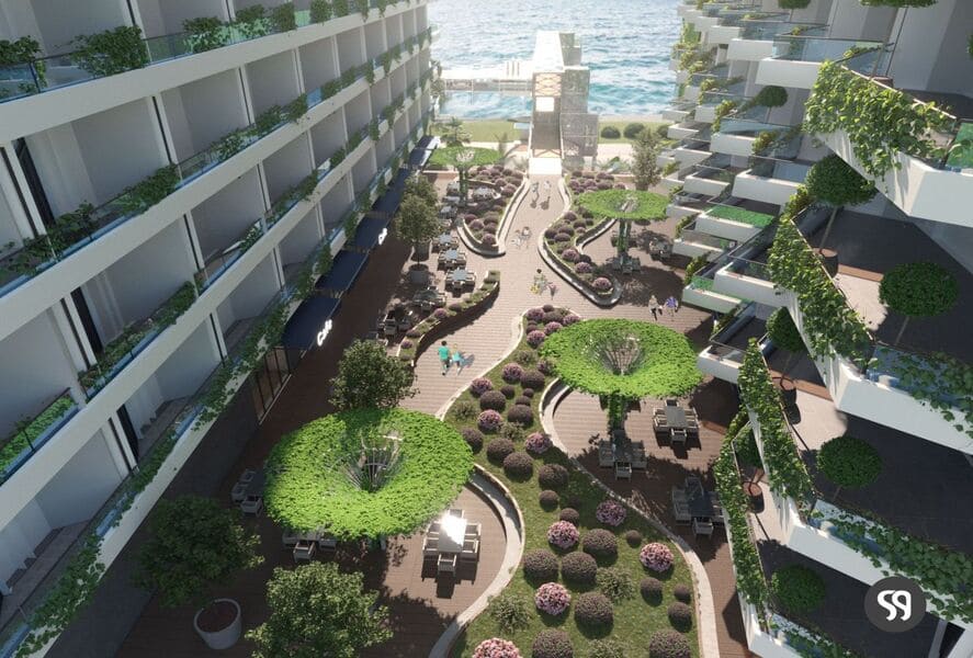The recreational area of the residential complex will occupy 10,000 m². Combining the purest mountain and sea air, as well as a unique microclimate, it creates ideal conditions for quality life and perfect relaxation. It is especially important that part of the recreational area will be occupied by a perennial pine grove and other endemic vegetation. We also note that the swimming area in front of the complex, characterized by clean sea water, creates excellent opportunities for thalassotherapy.
