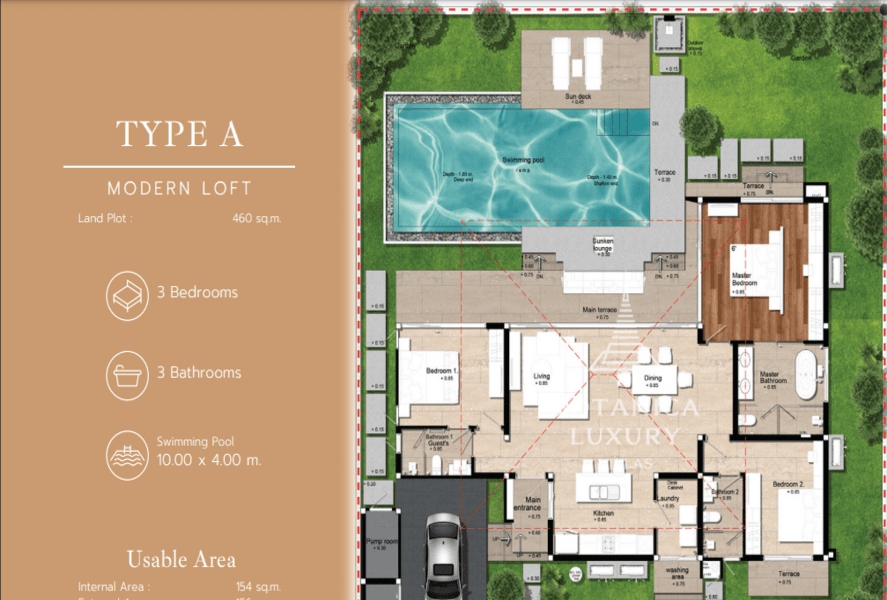We have villas with 3-4 bedrooms and 3-4 bathrooms, where everyone can find their favorite time of year, enjoying the perfect combination of modern Zen and Modern Loft styles. Villa sizes start from 305 square meters, giving you the space to make your dreams come true.