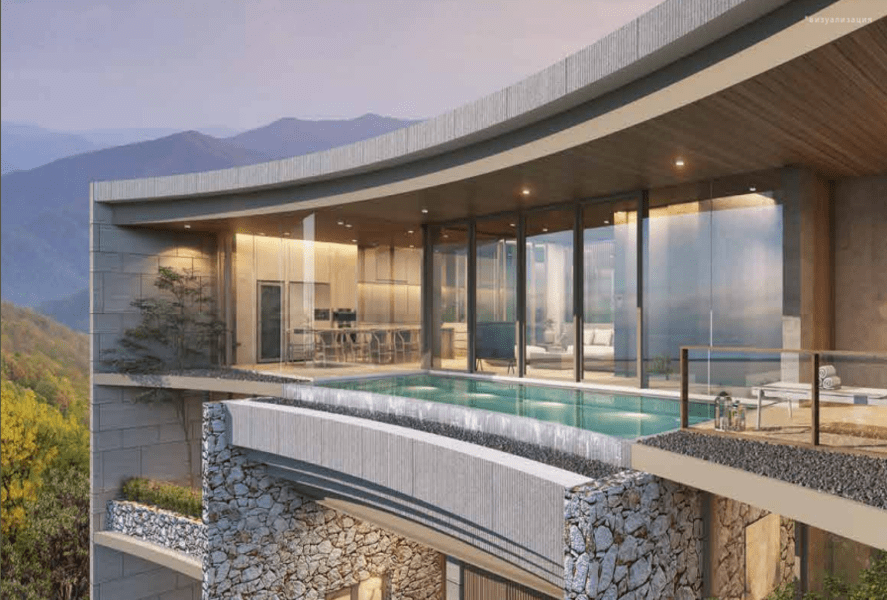 The premium club village is located on a picturesque slope surrounded by mountain peaks and tropical forests. Each villa enjoys fantastic panoramic views thanks to its unique location. Streams of mountain air and the rays of the morning sun at dawn envelop the valley and give an indescribable feeling of serenity. The unique architectural code of the village is designed in complete harmony with the surrounding natural landscape. We are sincerely proud to create such a unique project as Prime Pano.