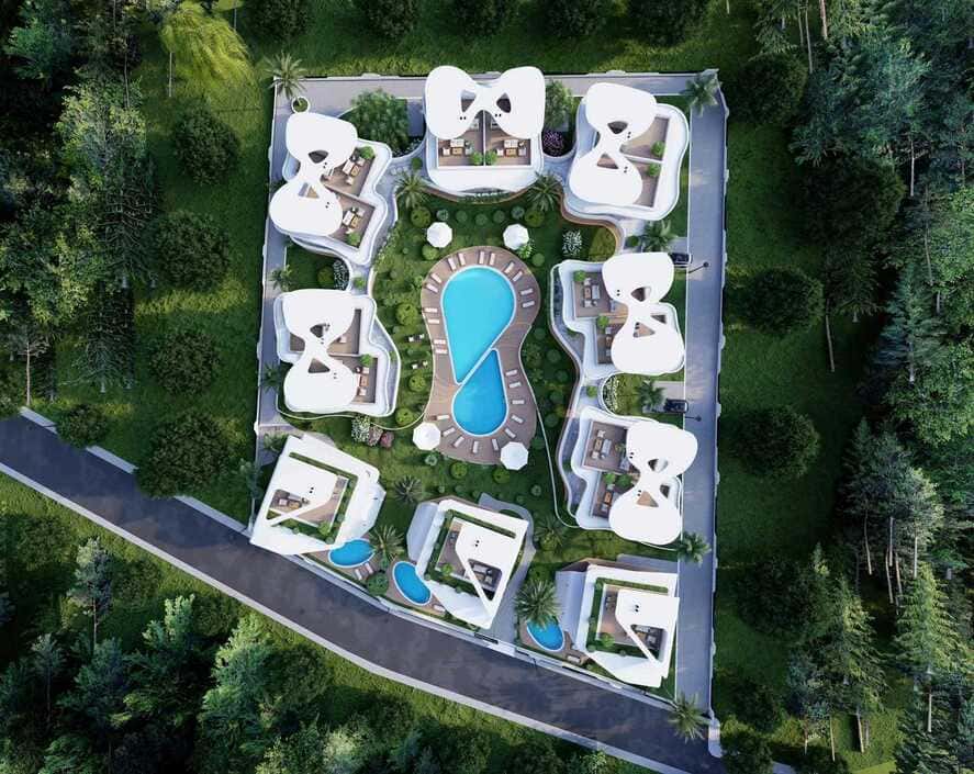 The Olivia Garden project is located in a quiet, cozy and picturesque place in Northern Cyprus, among olive trees, just 500 meters from the sea, in a town called Lapta.