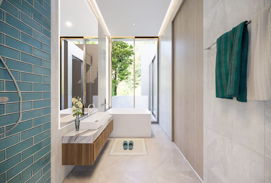 עיצוב הפנים של הפרויקט מודרני עם שימוש בצבעים ניטרליים של לבן וכחול, בדומה לאבן הלרימר, צבעים אלו יוצרים תחושת יוקרה. גווני האבן מעניקים לבית מראה פתוח, מרחב מגורים נרחב ועיצוב מודרני בסגנון פלטהאוס.