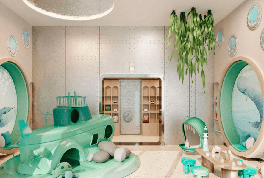 Отделка под ключ. Мягкие изогнутые линии, органичные формы и отражающие поверхности берут под контроль естественный свет, используя его для освещения комнат и смягчения углов. Наклоненные зеркала создают иллюзию сказочных пространств, а лазурно-голубые тона и металлические акценты воссоздают эффект солнечного света над нетронутыми океанами.