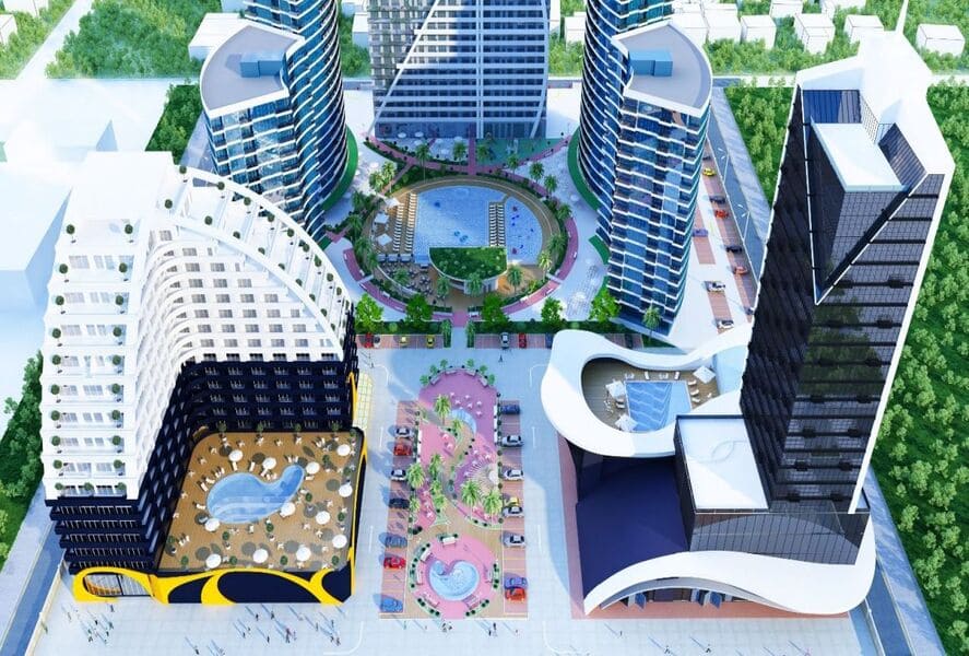 Комплекс объединяет жилые блоки и международные гостиницы – Ibis Styles и Novotel Living.