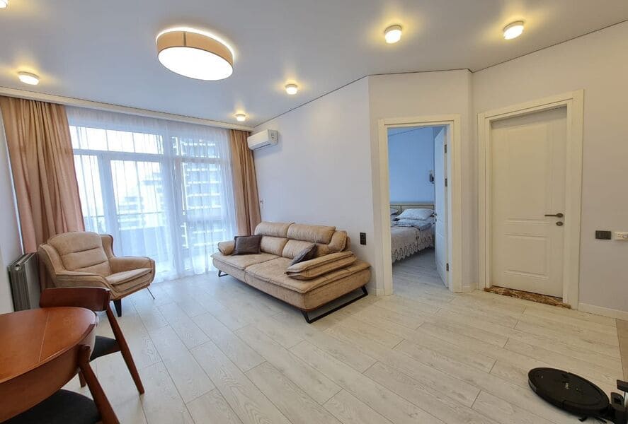 Продается двухкомнатная квартира (1 спальня, и кухня-гостиная) общей площадью 50 м² с двумя балконами в лучшем комплексе бизнес класса в Батуми White Sail.