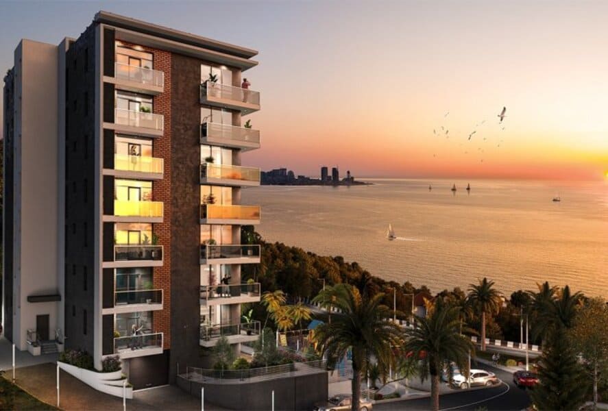 Купите квартиру в 200 метрах от моря, в исключительном жилом комплексе в состоянии белого каркаса, и живите в удивительной/впечатляющей обстановке!