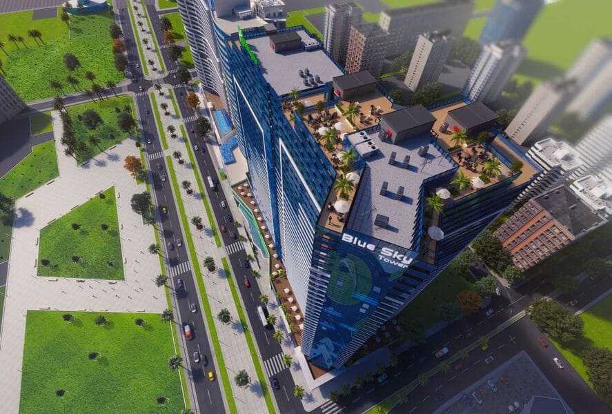 Апарт-отель BlueSky Tower появится всего 500 метров отделяют его от побережья. Еще один знаковый объект рядом – местная достопримечательность Ворота Черного моря.