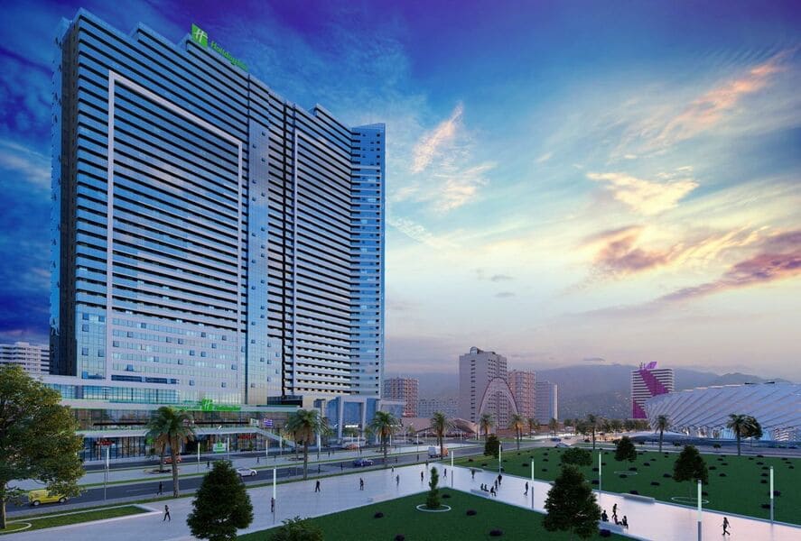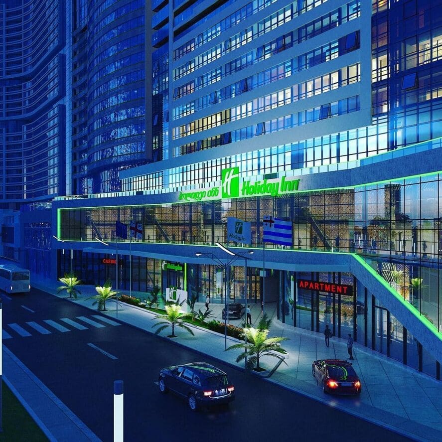 Современная архитектура BlueSky и естественно отраженный вид города в остеклении, гармонично сочетаются с новыми и старыми границами Батуми.