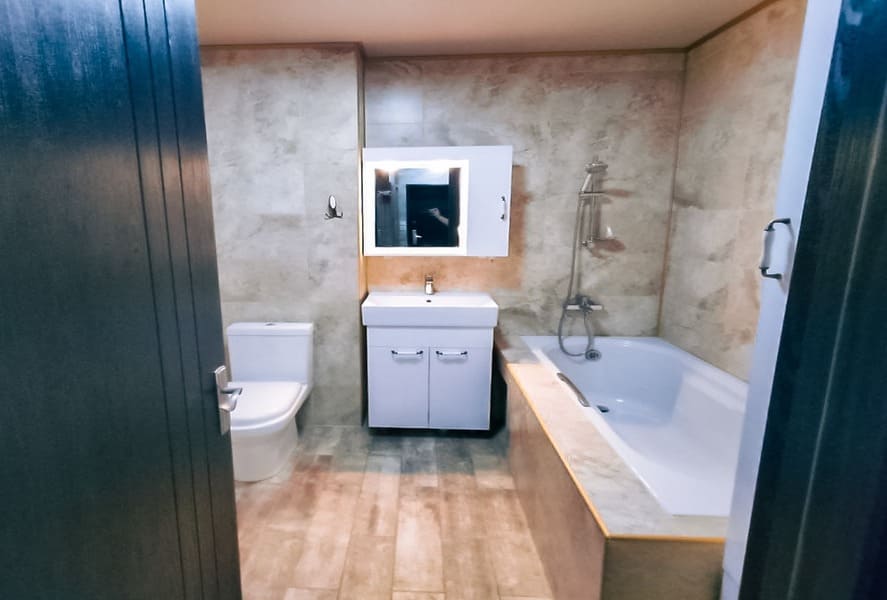 - Просторная ванная комната: вместо душевой кабины установлена ванна, что добавляет удобства и позволяет расслабляться после долгого дня.