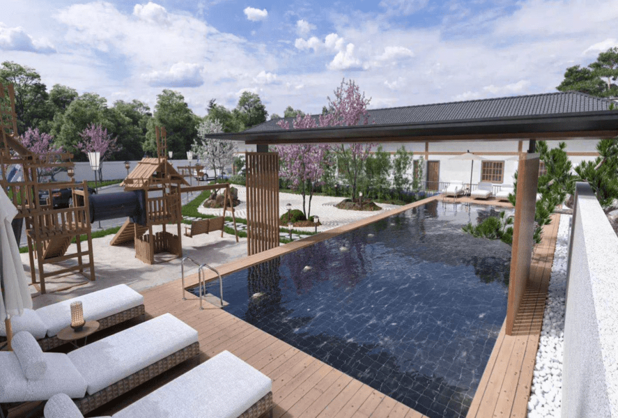 Весь проект и общественные части спроектированы в чистом японском стиле