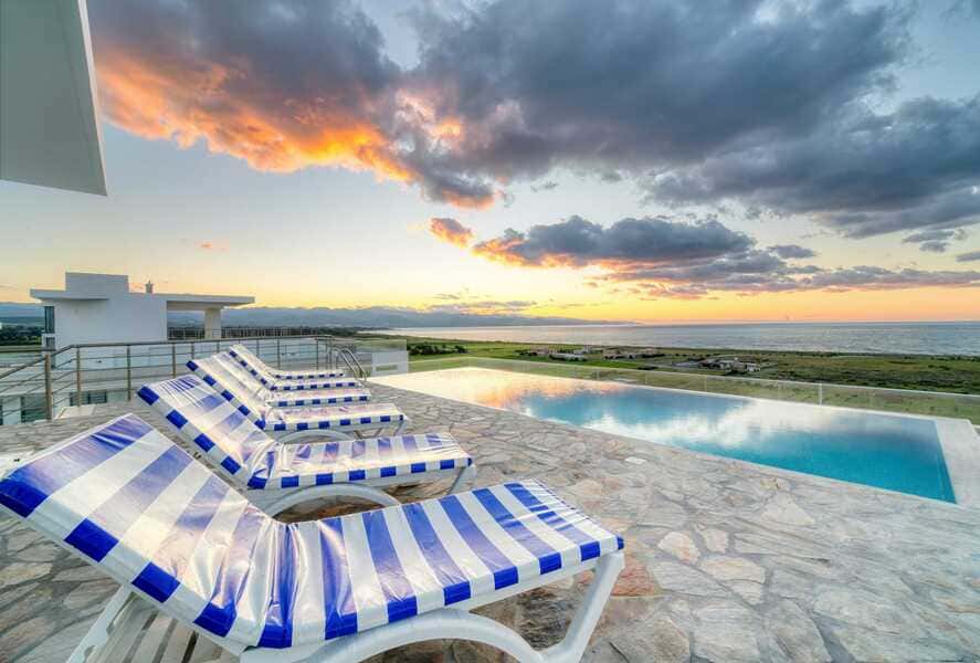 Во-первых, идеальное расположение – на берегу песчаного пляжа, в окружении апельсиновых рощ, в 10 минутах от аутентичного киприотского города Гюзелюрт, в 30 минутах от столицы г.Никосия и рядом с очаровательной деревушкой Газиверен.