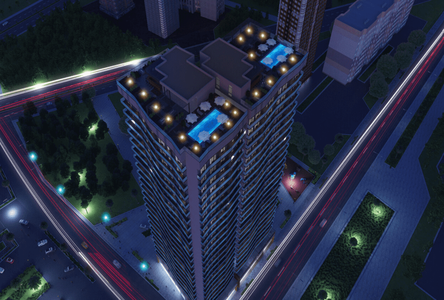 - Современный дизайн: Guru Residence выделяется элегантным фасадом с просторными балконами, стеклянными ограждениями и надежной гидроизоляцией.