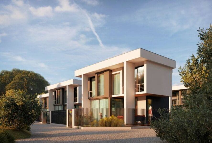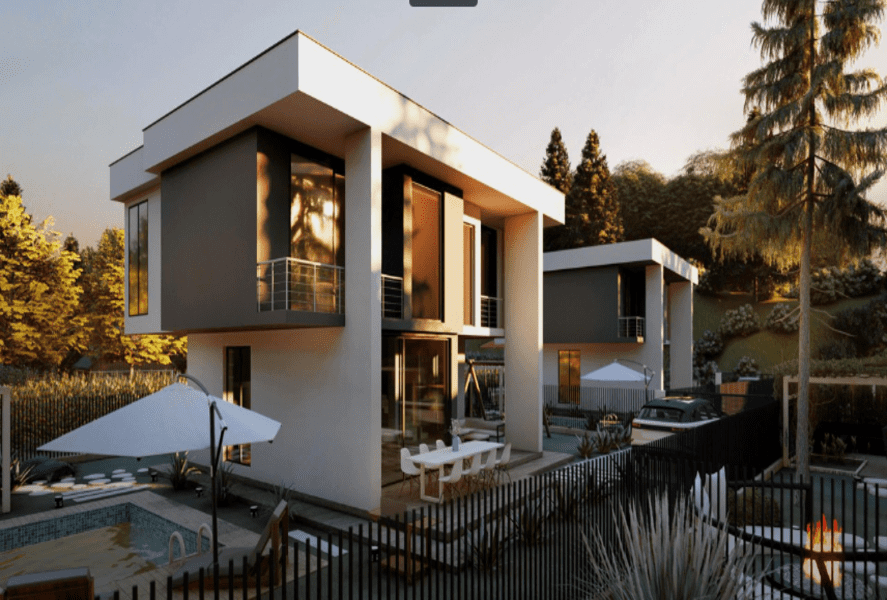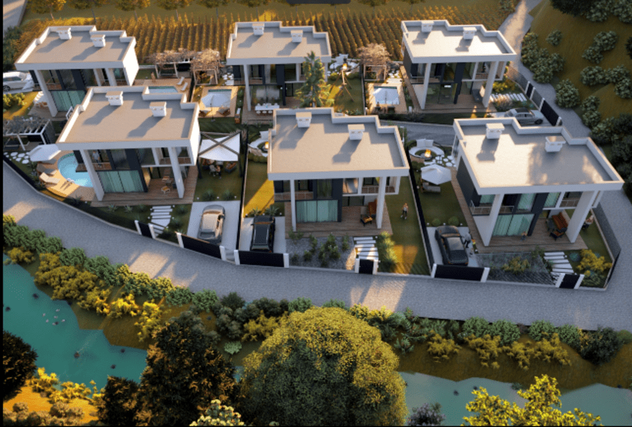 В жилом комплексе реализуются двухэтажные виллы площадью от 120 м2 с личным дворовым участком размером 345 м2. Дома имеют эргономичные планировочные решения. В каждом доме есть гардеробная комната, ландшафтный дизайн, стеклянные перила, наружная металлическая лестница, балкон, терраса, бассейн и беседка на заднем дворе. Возле каждой виллы оборудовано парковочное место. Участки отделены друг от друга невысоким забором. Жилье сдается в эксплуатацию в состоянии белый каркас с полным ремонтом.