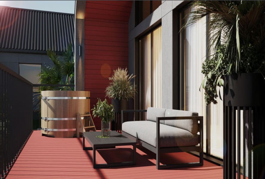 Красный деревянный фасад создает яркий и уютный облик, приковывая взгляды прохожих и придавая дому неповторимый характер . Фасад дома выделяется не только цветом, но и текстурой, подчеркивающей естественную красоту дерева. Он украшен вертикальными рейками, придающими зданию динамичность и симметрию . Текстура серого камня, используемая в отделке фасада или в других архитектурных элементах, добавляет контраст и элегантность .