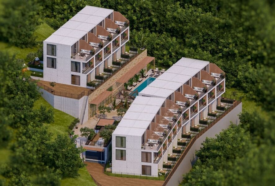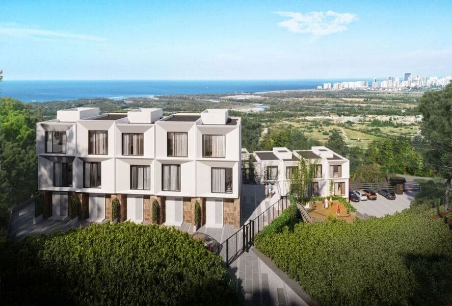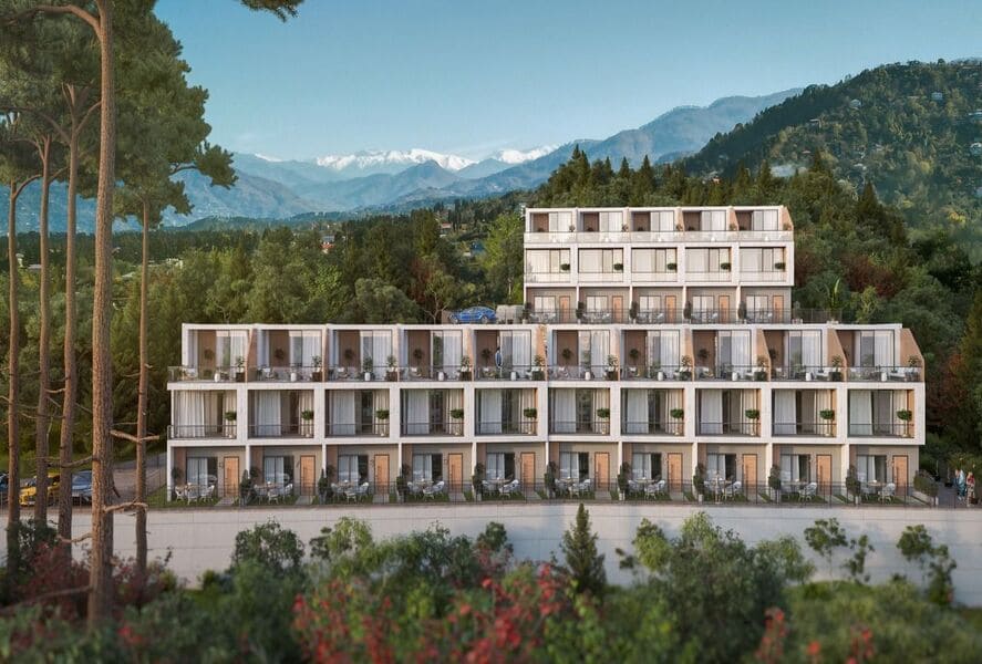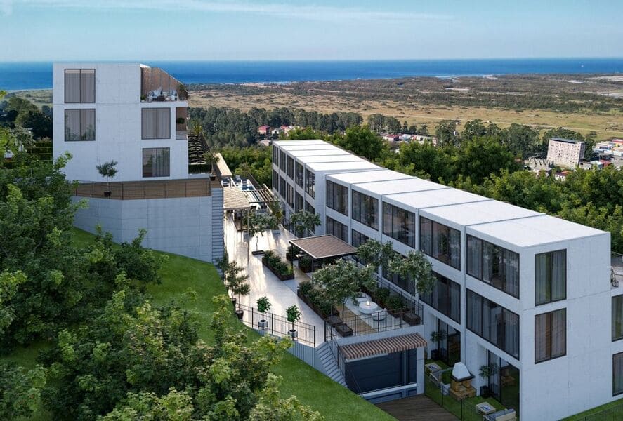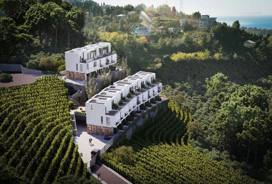 Жилой комплекс Home Town House всего из 15 таунхаусов на склоне горы с панорамными видами на Чёрное Море и Батуми.